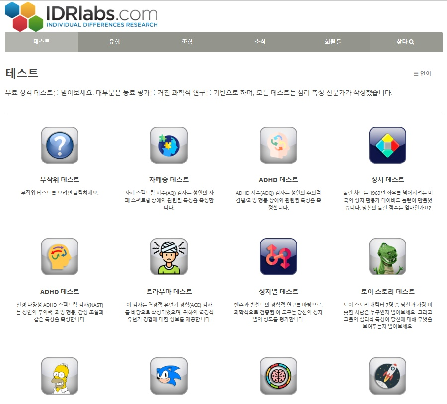 IDRlabs MBTI 테스트 링크 접속 안내